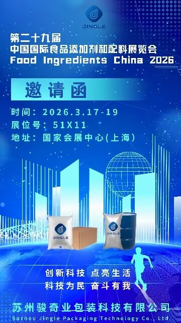 Suzhou Jingle Packaging Technology Co., Ltd. ay nalulugod na ipahayag ang pakikilahok nito sa paparating Food Ingredients China 2026 eksibisyon. Ang kaganapan ay magaganap mula sa Marso 17 hanggang 19, 2026 sa National Exhibition and Convention Center (Shanghai) . Inaanyayahan ang mga bisita na makipagkita sa ekspertong pangkat ng kumpanya sa Booth 51X11 upang galugarin ang mga komprehensibong solusyon sa packaging at talakayin ang mga potensyal na pakikipagtulungan.